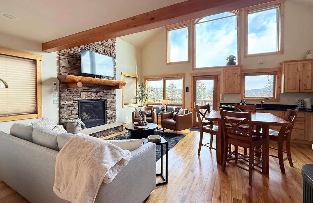 Este lugar incluye una cocina bien equipada, además de un comedor al aire libre para que los huéspedes puedan cocinar por sí mismos. También puedes utilizar un lavavajillas, nevera y un horno para prepararte la comida. Los huéspedes tienen la opción de comer en el restaurante SEASONED-An American Bistro, que está a unos 600 metros. La estación del teleférico Estes Park Aerial Tramway está a un corto paseo de esta villa.